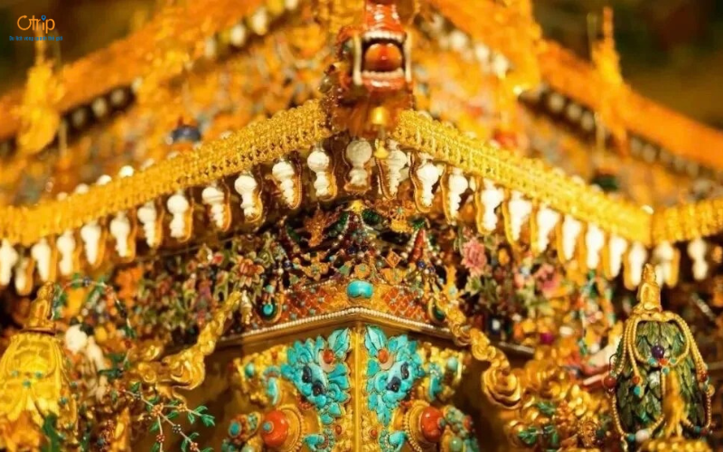 Khi bước vào bên trong, bạn sẽ bị kinh ngạc. Thứ đập vào mắt chính là Mandala Vajrabhairava. Đây là một Mandala Kim Cương thừa cực kỳ quý giá. Toàn bộ kiệt tác này được làm từ vàng ròng. Nó được khảm nhiều loại đá quý rực rỡ. Các nghệ nhân đã sử dụng ngọc lam và san hô.