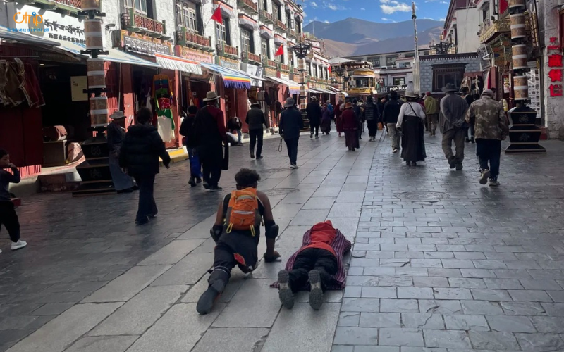 Sau khi chiêm bái, hãy bước ra phố Barkhor. Đây là con phố bao quanh ngôi chùa linh thiêng. Bạn sẽ thấy những người hành hương lúc hoàng hôn. Họ thực hiện các nghi lễ với sự thành tâm. Tiếng kinh cầu vang vọng trong không gian tĩnh lặng. Nhiếp ảnh đường phố tại đây vô cùng ấn tượng. Màu áo đỏ của các nhà sư hòa trong nắng vàng. Đây thực sự là nơi gần mặt trời nhất.