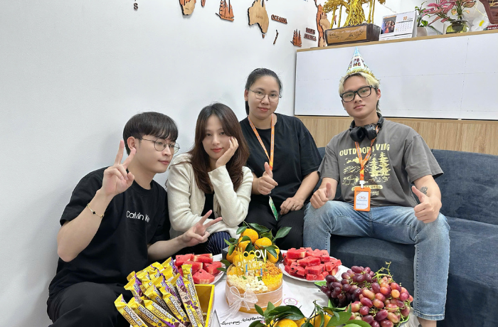 Không khí văn phòng hôm nay rộn ràng. Bánh kem hoa quả, phần thưởng phần quà hiện vật tạo nên bức ảnh đẹp của một tập thể đoàn kết.